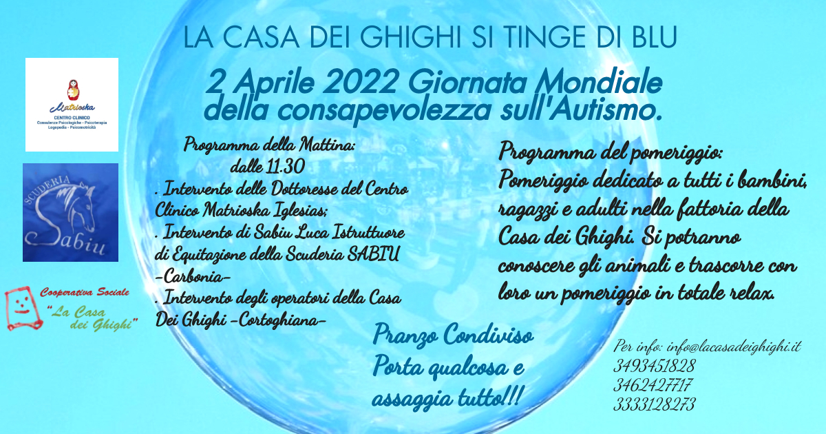 il 2 Aprile la Casa dei Ghighi si tinge di Blu. Dalle ore 11.30 vi invitiamo ad